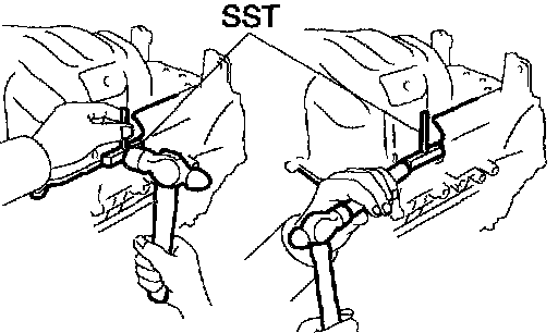 b. Using SST, remove the crankshaft pulley bolt.