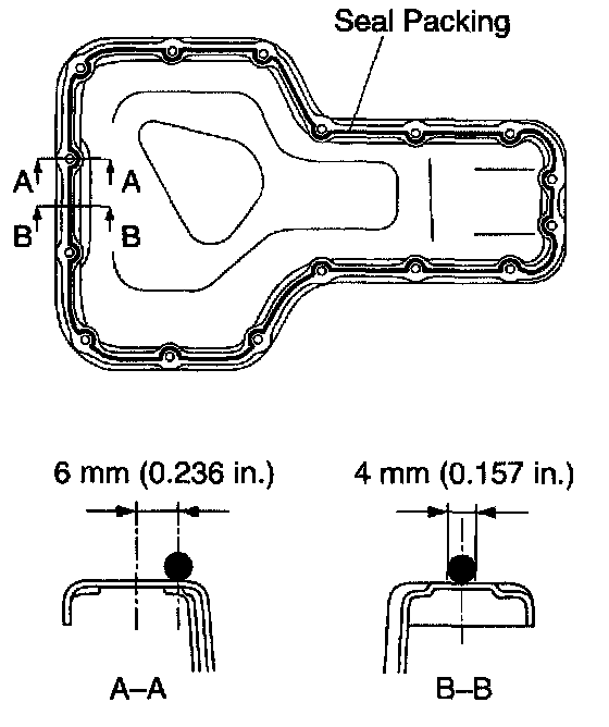 b. Apply seal packing in the shape of bead (Diameter 3.5 mm - 4.5 mm (0.138 - 0.177 inch)) consequently as shown in the illustration.