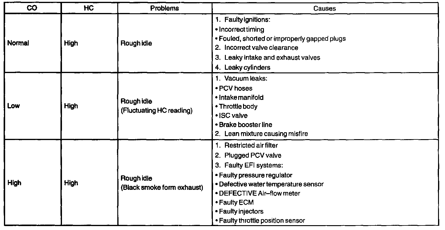 e. If the CO/HC concentration does not comply with regulations, troubleshoot in the order given.