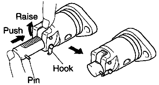c. Turn the crankshaft counter clockwise, and disconnect the plunger knock pin form the hook.