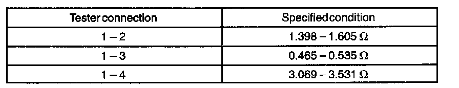 Measure resistance between terminals, as shown in the chart.