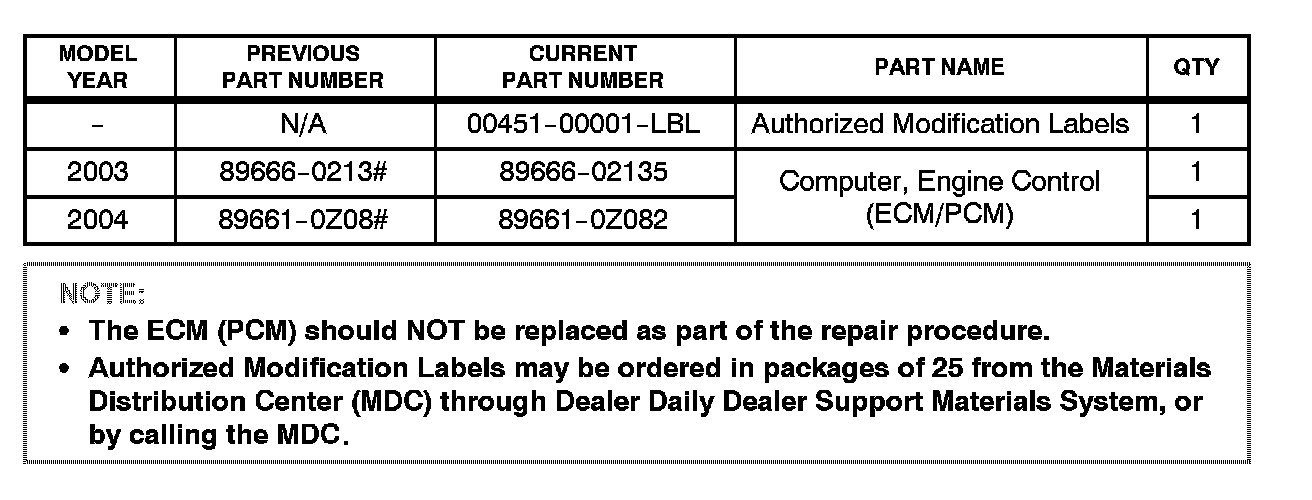 ^ ECM (PCM) part number: [Refer to the Parts Information section for the CURRENT PART NUMBER]
