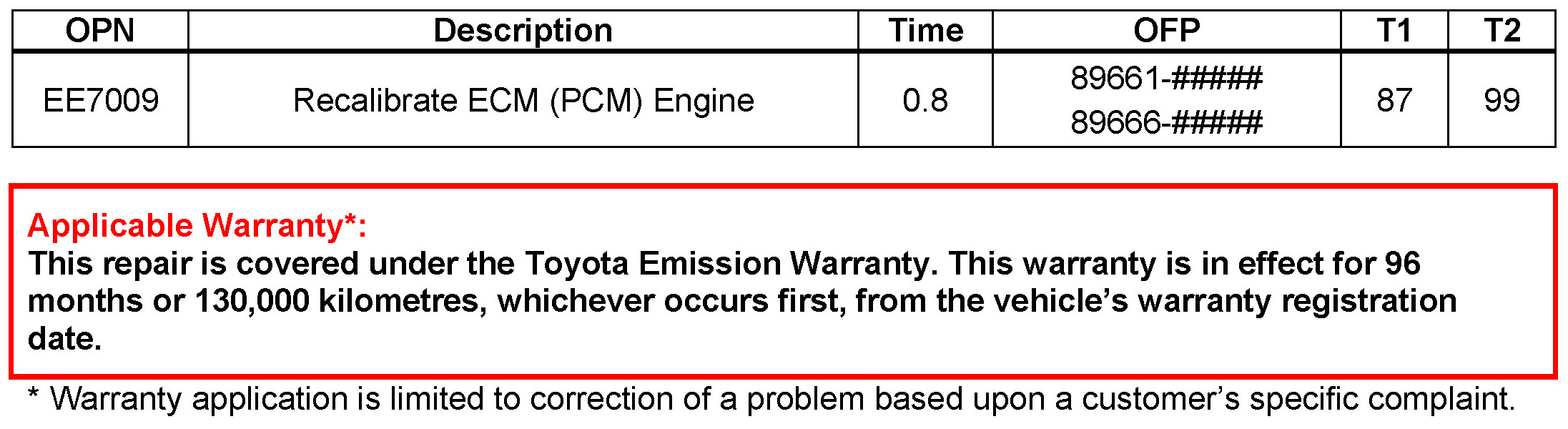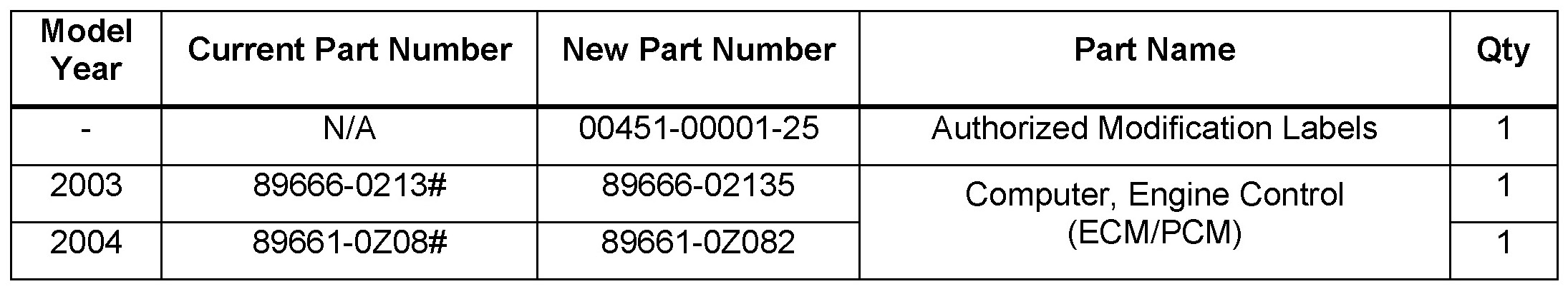 - ECM (PCM) part number: [Refer to the Parts Information section for the CURRENT PART NUMBER]