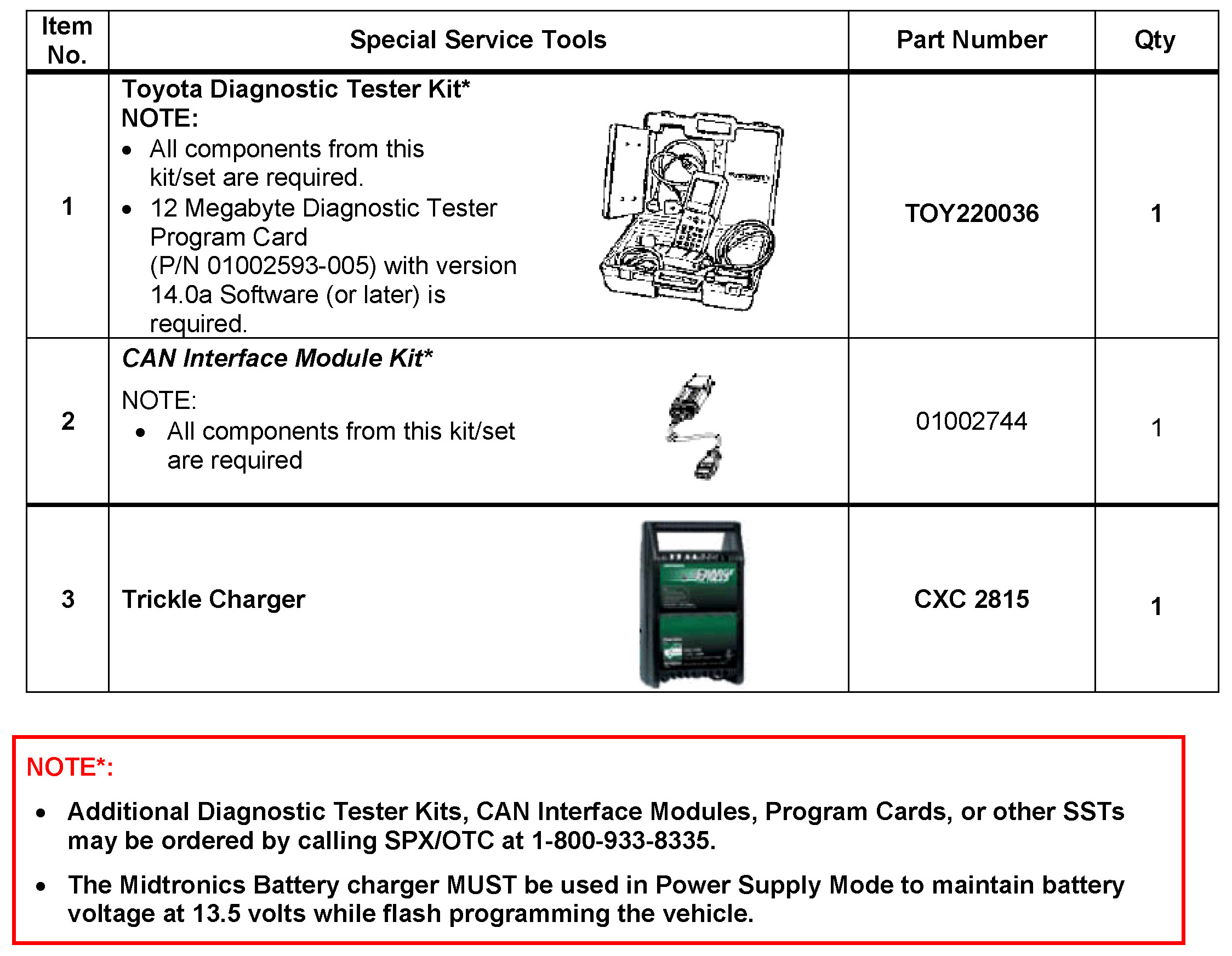 The Midtronics Battery charger MUST be used in Power Supply Mode to maintain battery voltage at 13.5 volts while flash programming the vehicle.