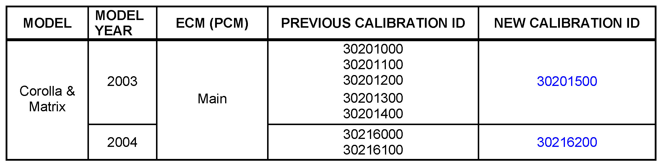 - Calibration ID(s): [Refer to the Calibration Identification Chart for the NEW CALIBRATION ID]