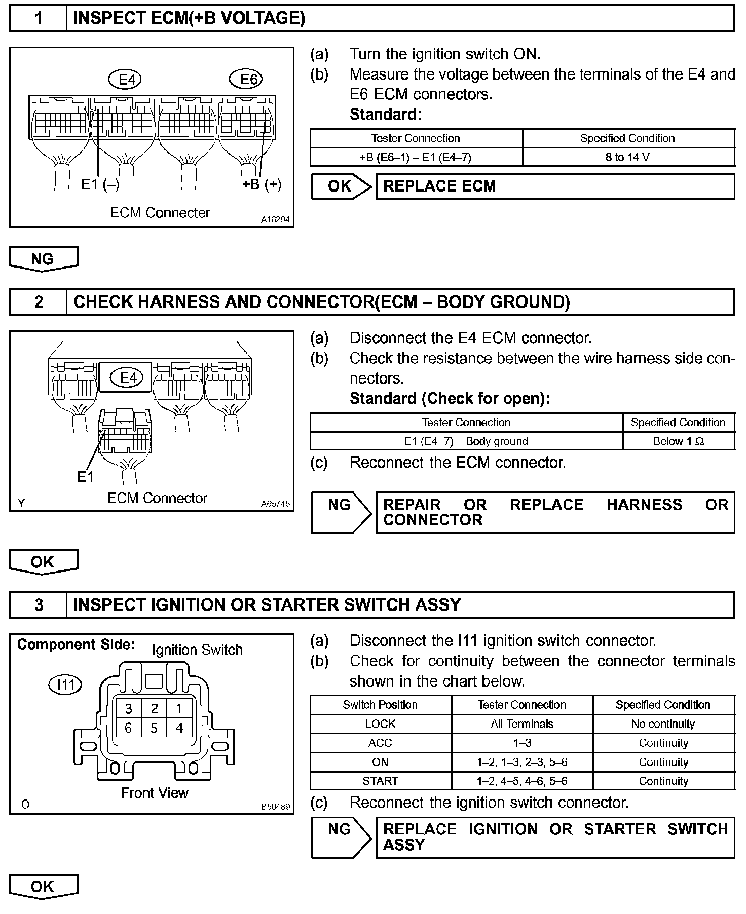 This signal causes current to flow to the coil, closing the contacts of the EFI relay and supplying power to terminal +B of the ECM.