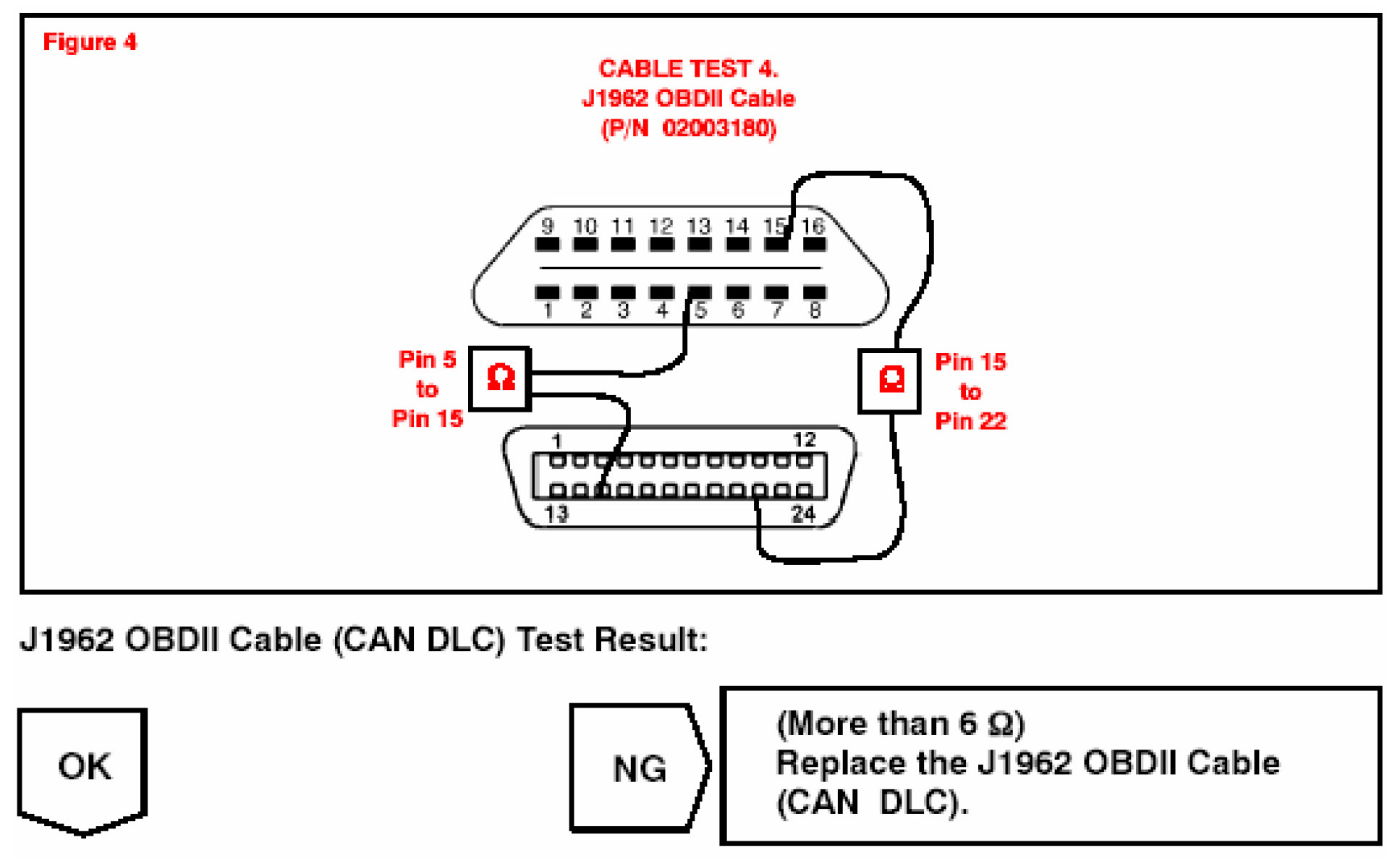 B. Test the J1962 OBDII Cable (CAN DLC) for continuity.