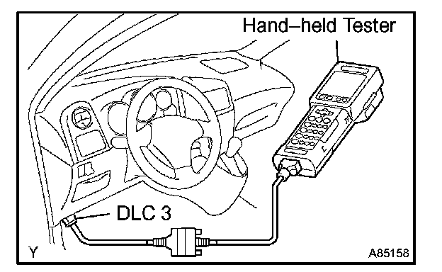 To check the DTC, connect the hand-held tester or OBD II scan tool to the Data Link Connector 3 (DLC3) of the vehicle. The hand-held tester or OBD II scan tool also enables you to erase the DTC and check the freeze frame data and various forms of engine data (for operating instructions, see the OBD II scan tool's instruction book). The DTC includes SAE controlled codes and manufacturer controlled codes. SAE controlled codes must be set as prescribed by the SAE, while manufacturer controlled codes can be set freely by a manufacturer within the prescribed limits (see the DTC chart).
