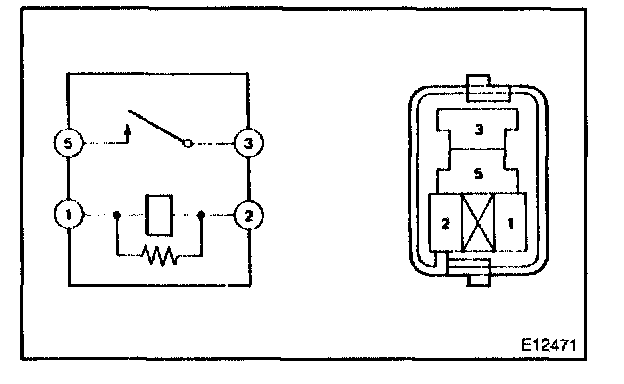 2. Using an ohmmeter, check that continuity exists between terminals 3 and 5 when the battery voltage is applied across terminals 1 and 2.