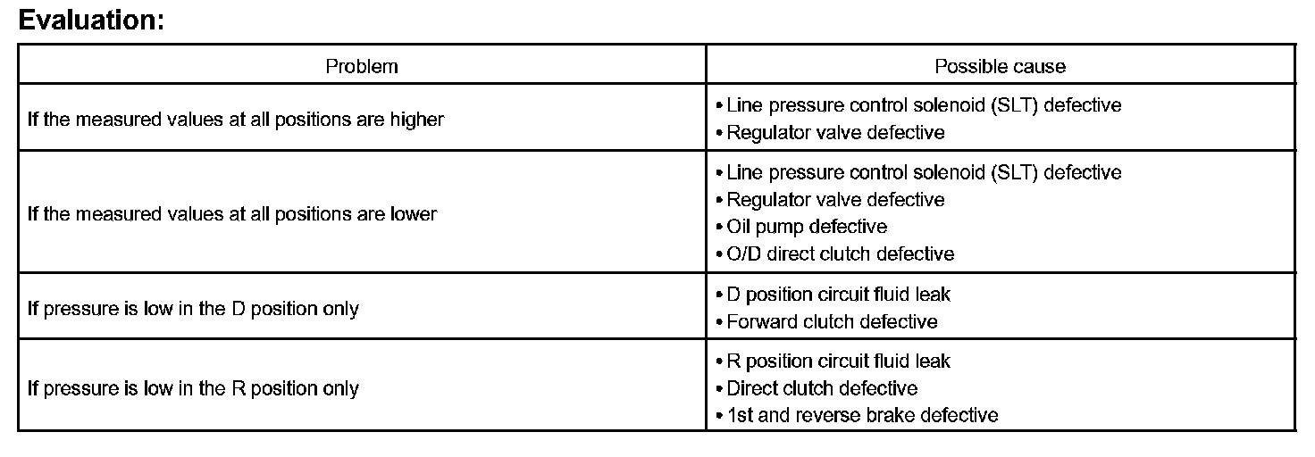 - Do the test at normal operation ATF temperature 50 to 80 °C (122 to 176 °F).