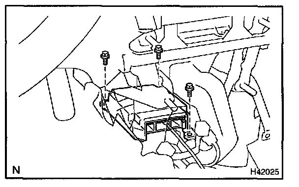 b. Remove the 3 bolts and the airbag sensor assy center.