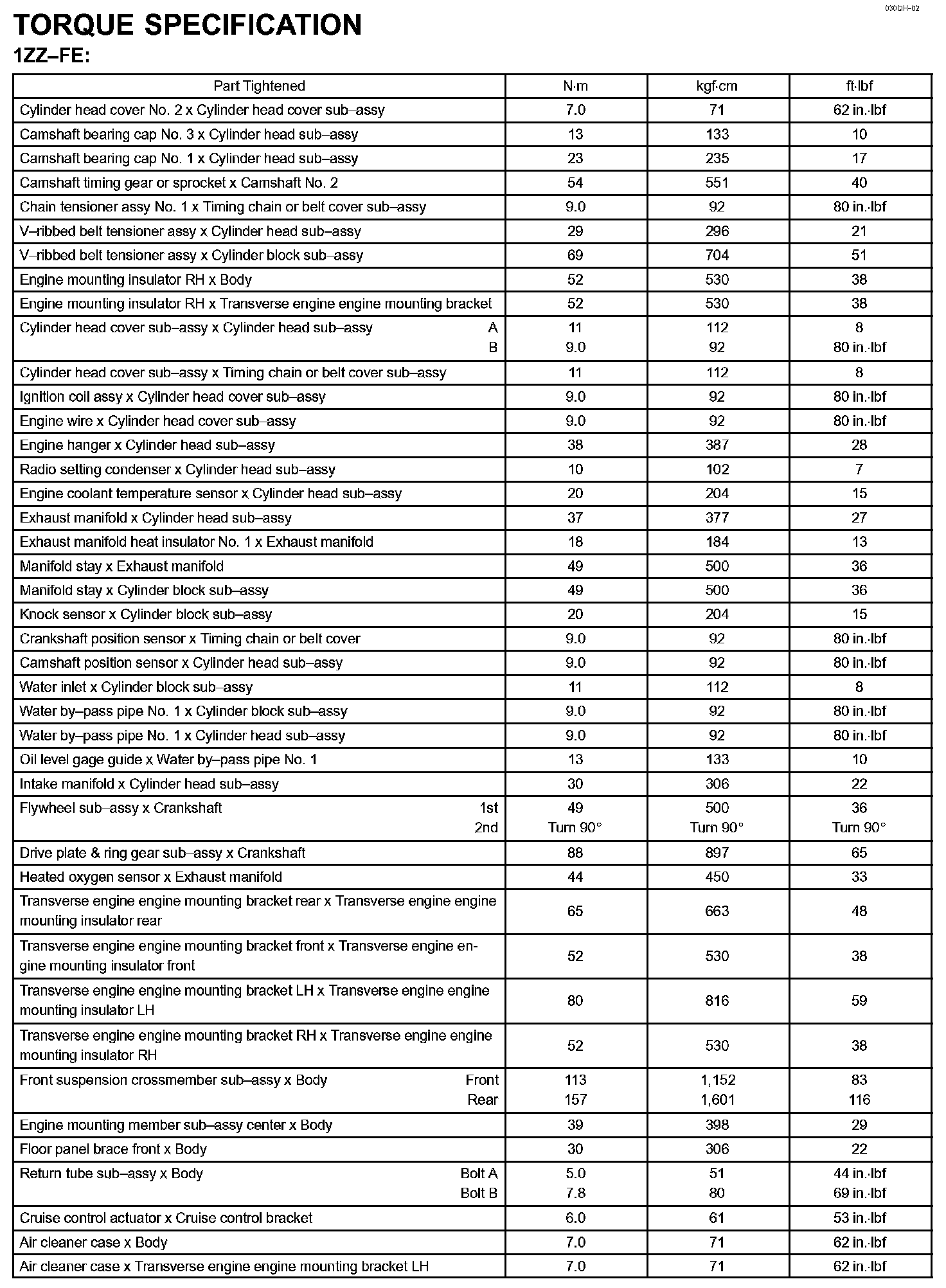 Matrix 2WD L4-1.8L (1ZZ-FE)