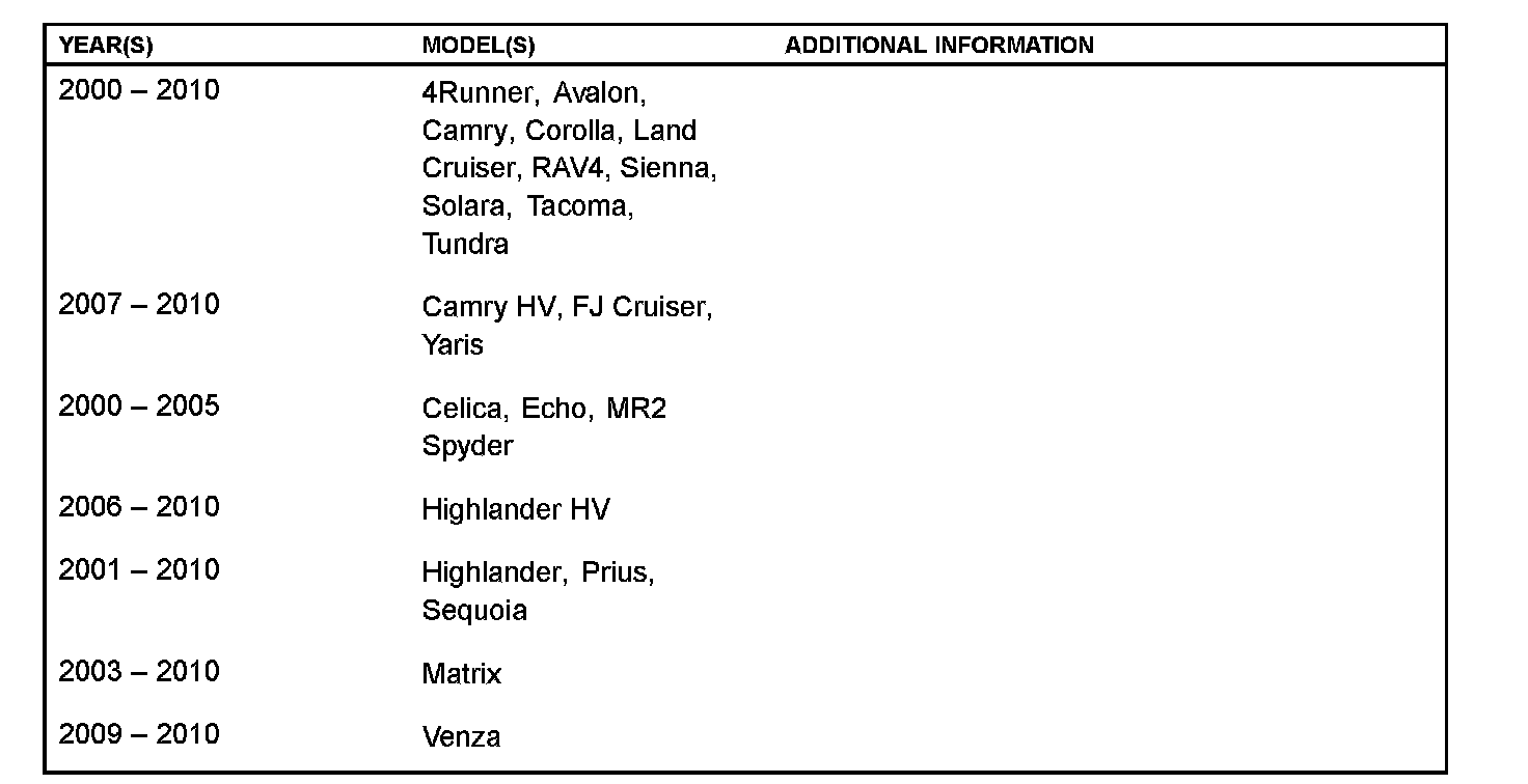 ^ Applicability has been updated to include 2010 model year vehicles.