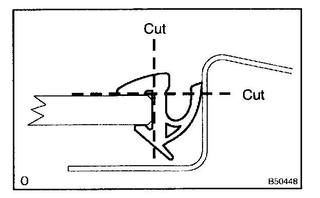 a. Using a knife, cut off the moulding as shown in the illustration.