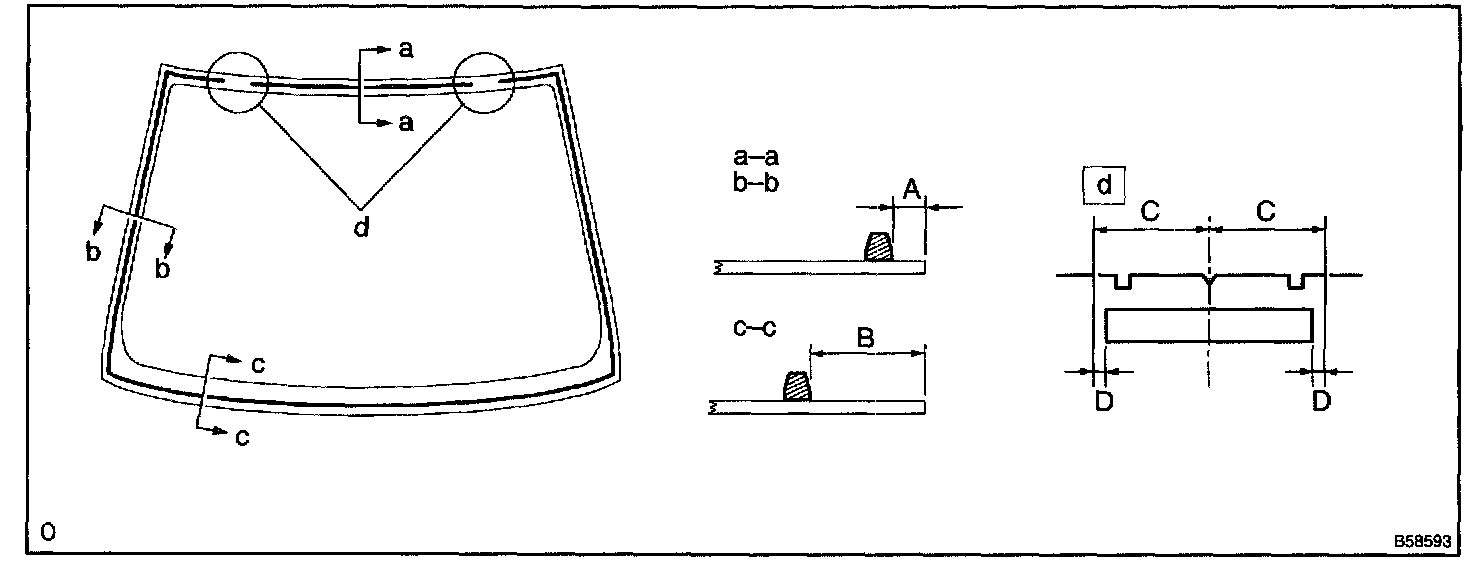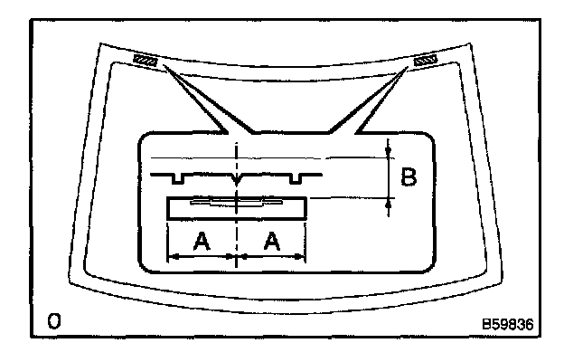 b. Install 2 new windshield glass stoppers No.2 onto the glass as shown in the illustration.