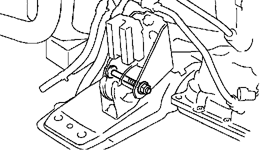 c. Remove the through bolt and nut, detach the engine mounting insulator LH from the vehicle.