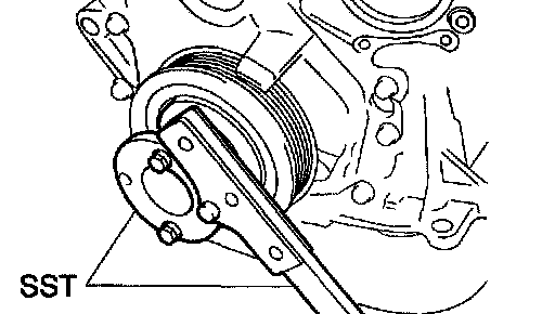 a. Fix the crankshaft with SST, then remove the drive plate and ring gear or the flywheel.