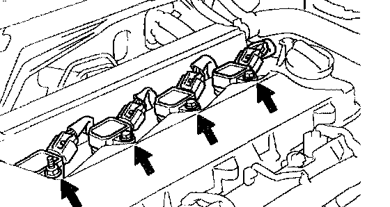 a. Remove the 3 bolts, the nut and the 4 ignition coils.