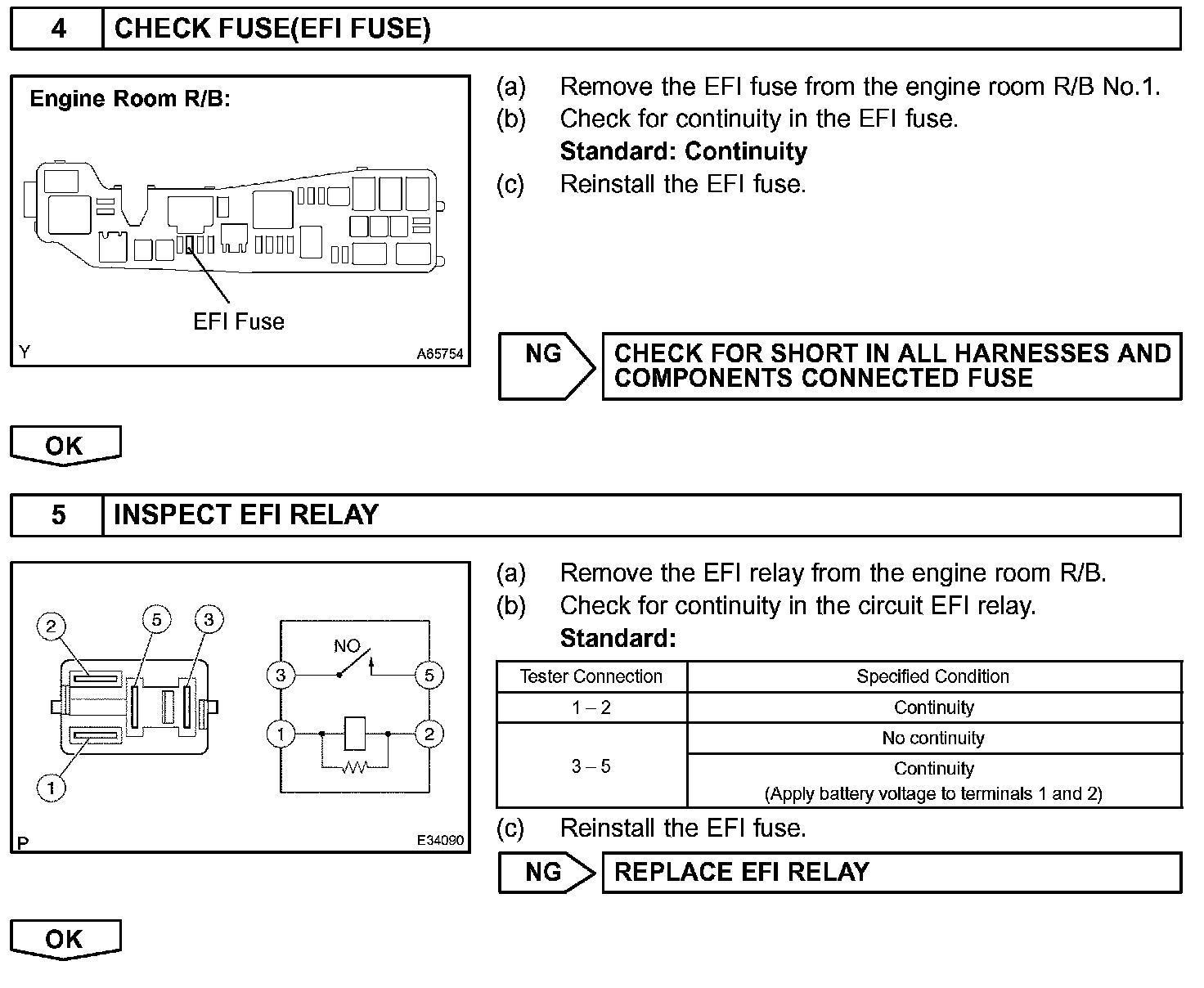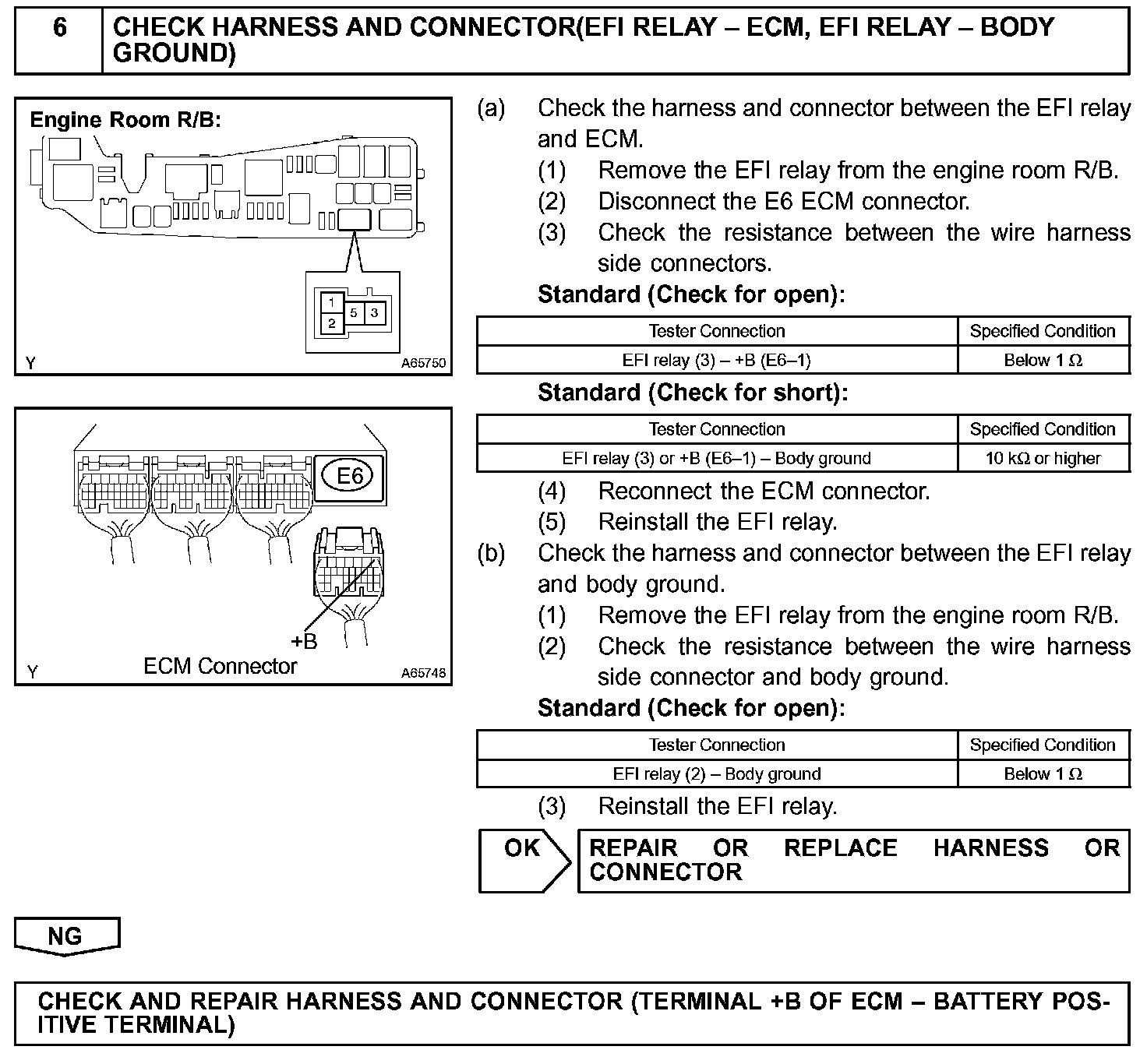 This signal causes current to flow to the coil, closing the contacts of the EFI relay and supplying power to terminal +B of the ECM.