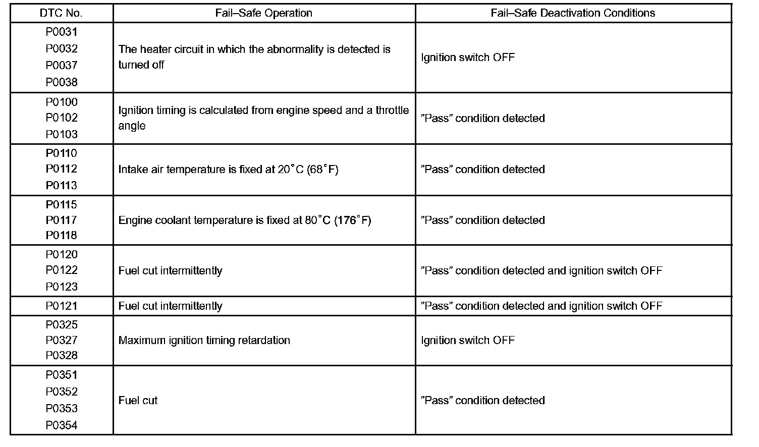 If any of the given codes is recorded, the ECM enters the fail-safe mode.