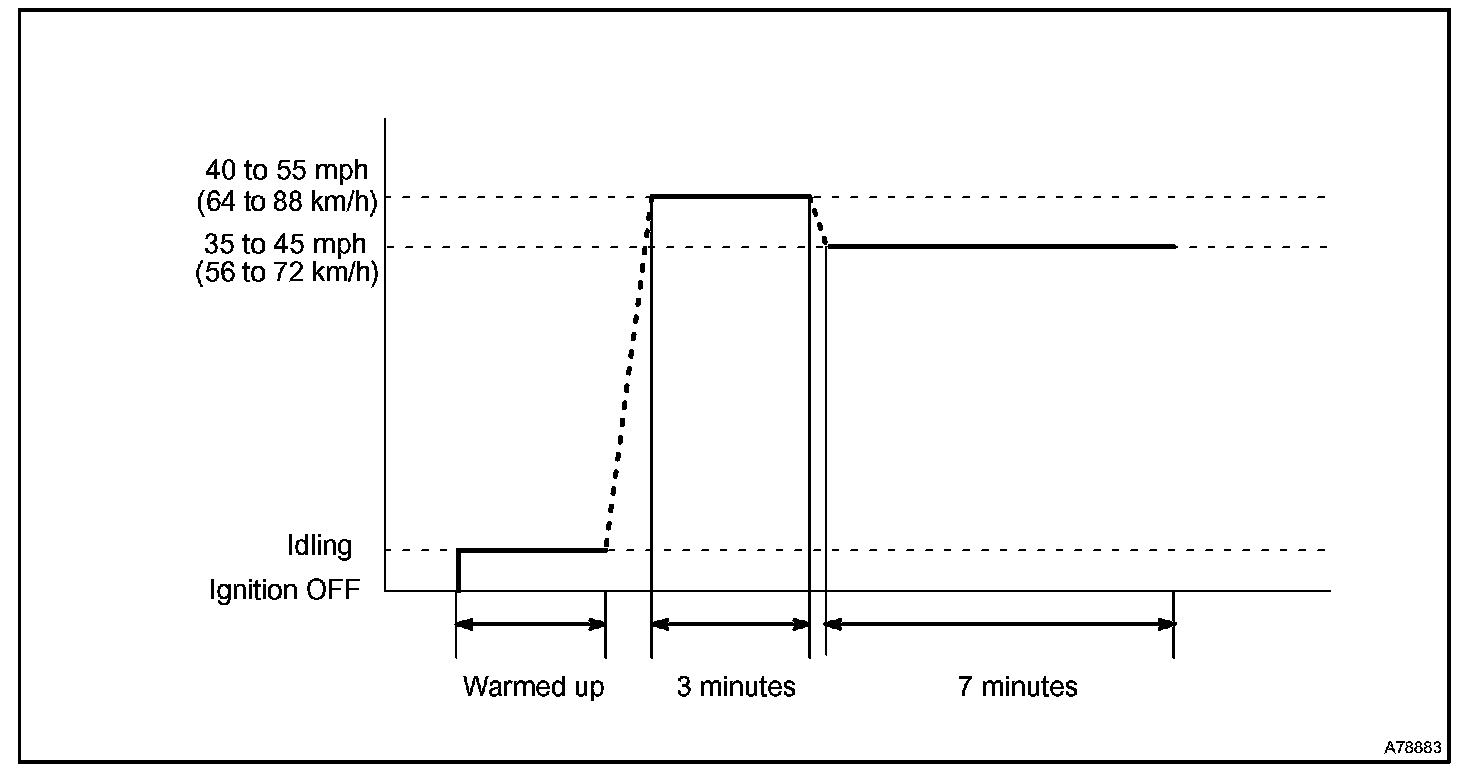 3. Drive the vehicle at 35 to 45 mph (56 to 72 km/h) for approximately 7 minutes.