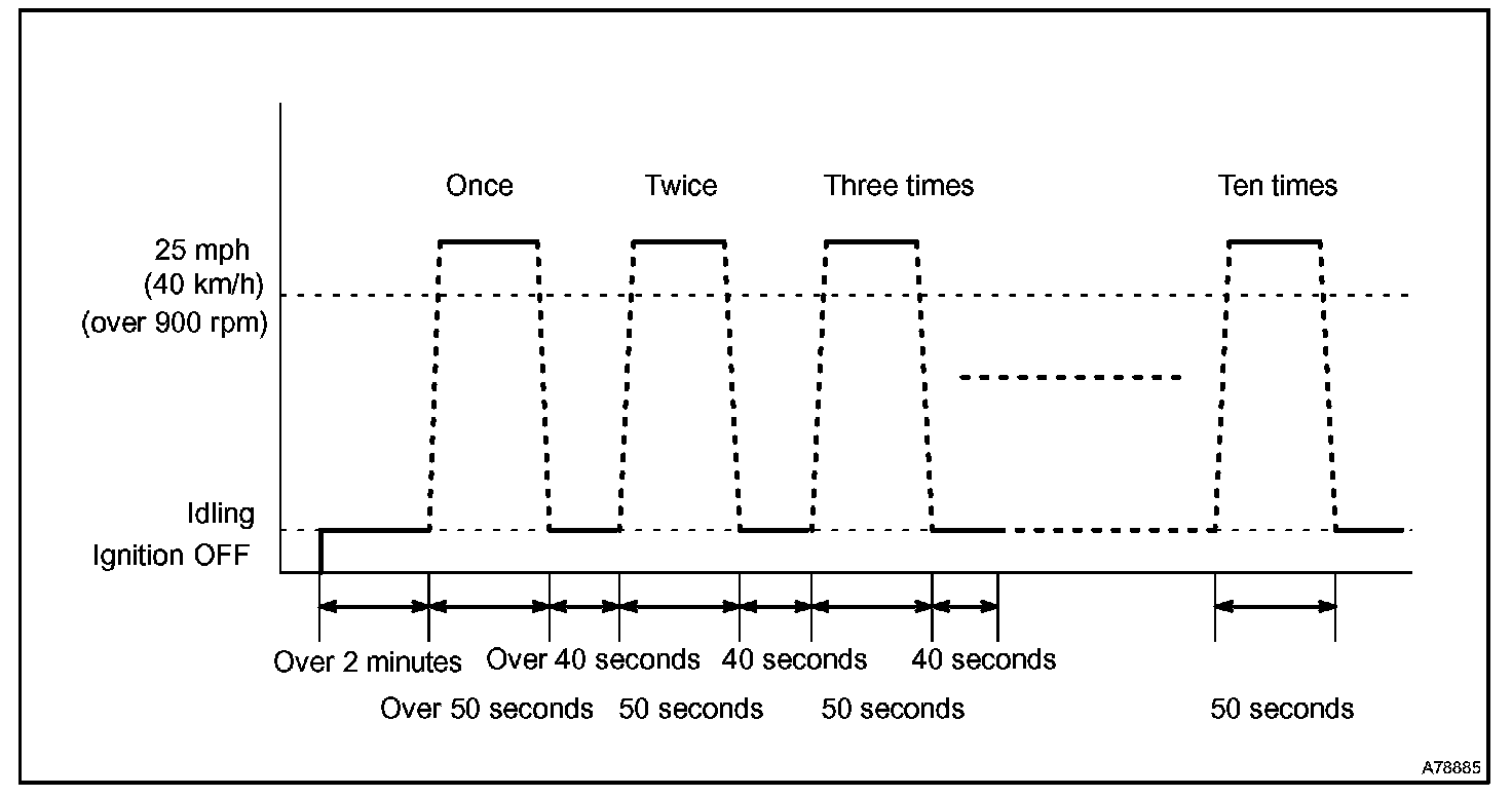3. Drive the vehicle at 25 mph (40 km/h) or more at least 50 seconds.