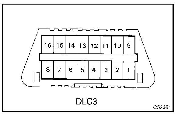 The vehicle's ECM uses the ISO 9141-2 for communication protocol. The terminal arrangement of the DLC3 complies with SAE J1962 and matches the ISO 9141-2 format.