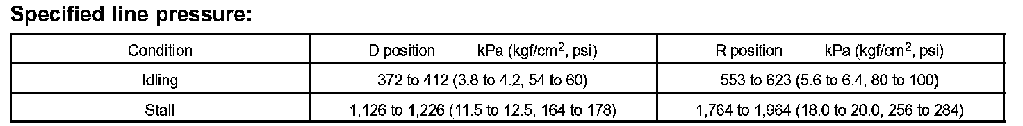 8. Depress the accelerator pedal all the way down. Quickly read the highest line pressure when the engine speed reaches the stall speed.