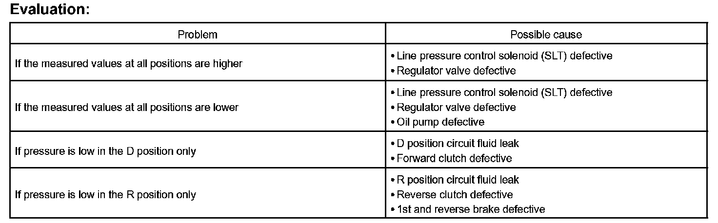 - Do the test at normal operation ATF temperature 50 to 80 °C (122 to 176 °F).