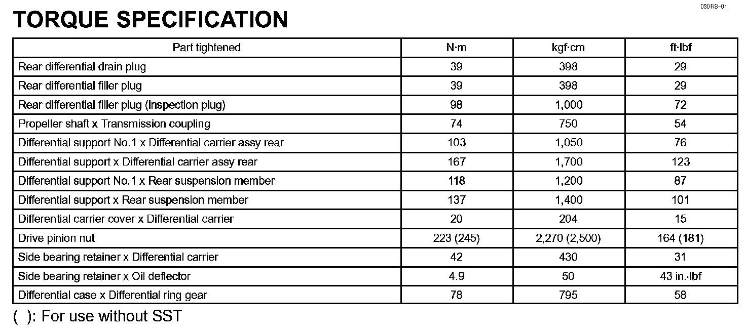 Differential - Torque Specification: