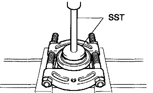 a. Using SST and a press, remove the transmission coupling radial ball bearing No. 1.