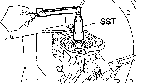 b. Using SST to hold the drive pinion, remove the nut.