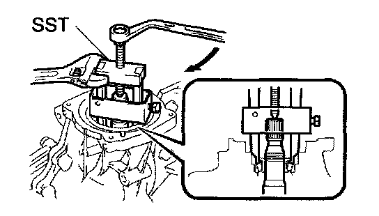a. Using SST, remove the rear drive pinion front tapered roller bearing from the drive pinion.