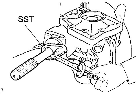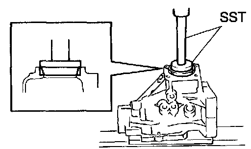 f. Using SST and a press, press the ring gear mounting case bearing LH outer race into the case.