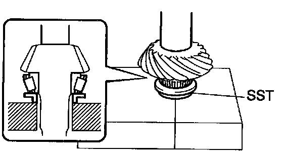 c. Using SST and a press, press the driven pinion bearing front inner race into the driven pinion.