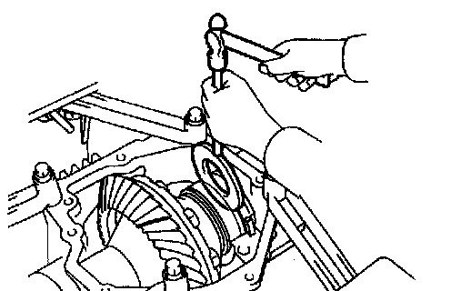 b. Using a chisel and a hammer, stake the gear nut.