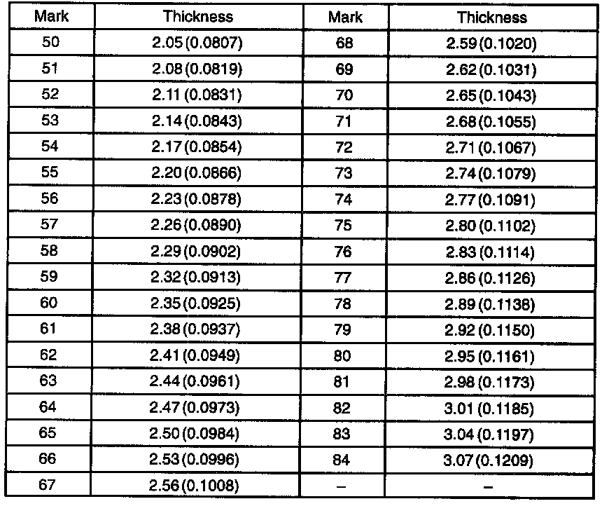 Washer thickness mm (in)