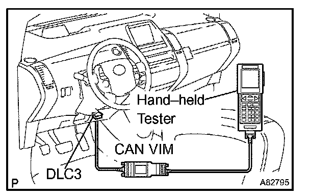 HINT: Connect the cable of the hand-held tester (with CAN VIM) to the DLC3, turn the power switch ON (IG) and attempt to use the hand-held tester. If the screen displays the message UNABLE TO CONNECT TO VEHICLE, there is a problem either with the vehicle or with the tester.