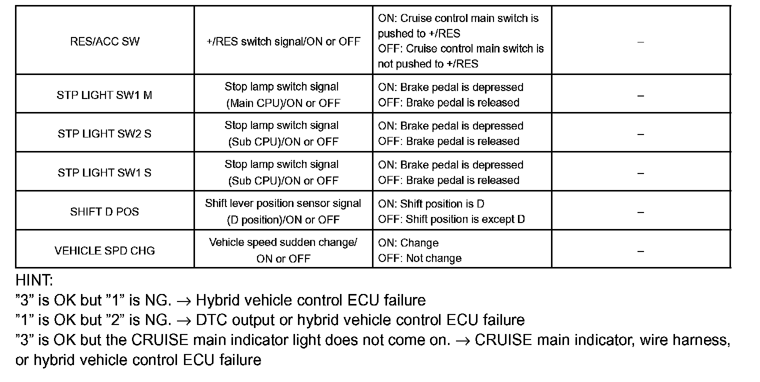 The CRUISE CONTROL data list is displayed while the hand-held tester is connected to the DLC3 with the power switch on (IG). Access the data list by following the prompts on the tester screen.
