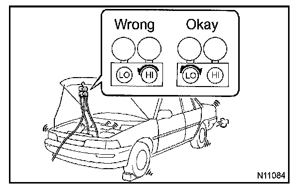 Open and close only the low pressure valve. If the high pressure valves are opened, refrigerant flows in the reverse direction causing the charging cylinder to rupture.