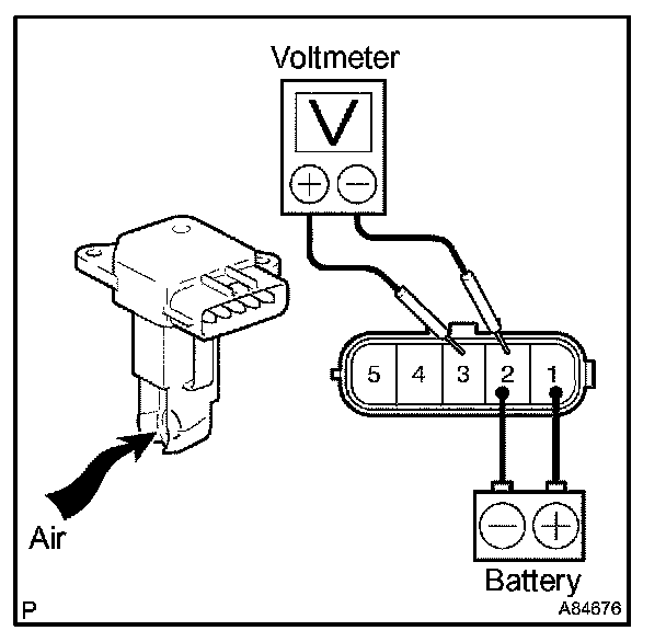 3. Blow air into the mass air flow meter, then check that the voltage fluctuates.