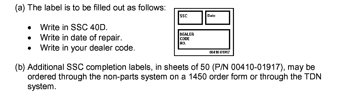 After completing repair and before returning the vehicle to the owner, a SSC completion label, which is enclosed in the owner's notification letter must be affixed to the left front door hinge post, near the check strap.