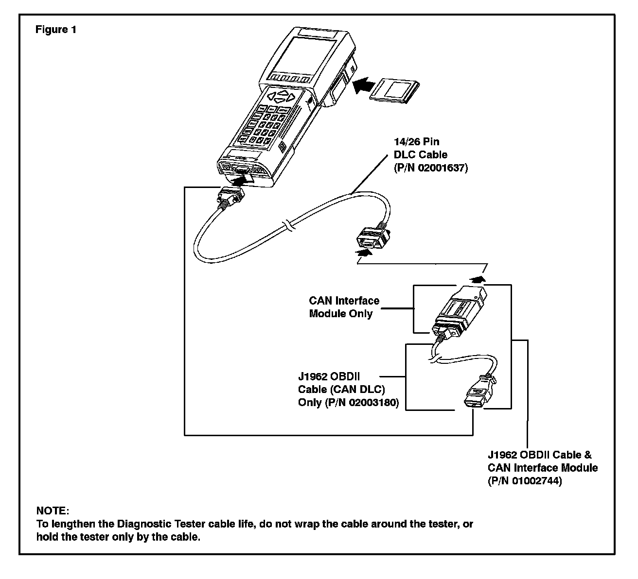 Before performing test, confirm that the Diagnostic Tester, 14/26 Pin DLC Cable, and CAN Interface Module are all securely connected.