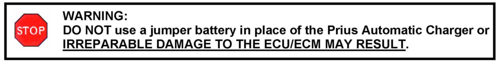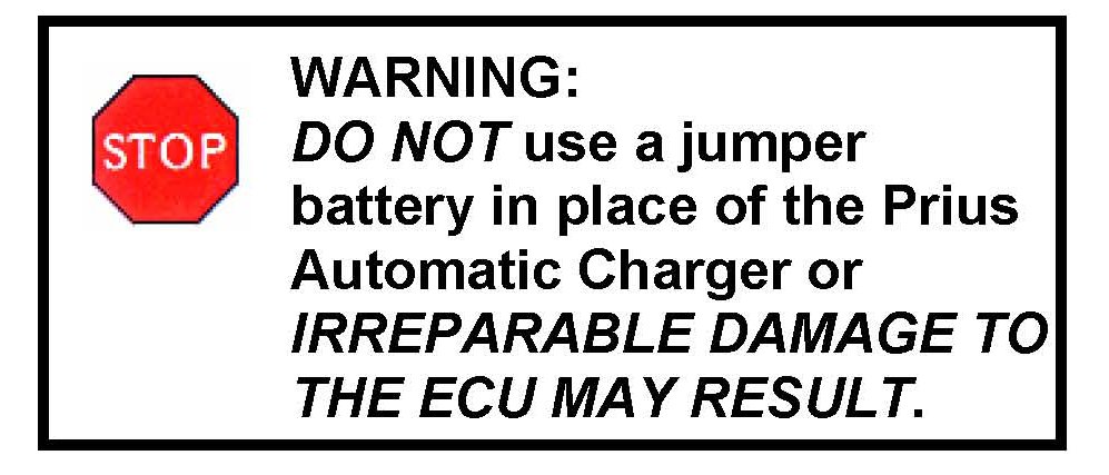 (c) Connect the Prius Automatic Charger. This MUST be done on all vehicles even if the battery is fully charged.