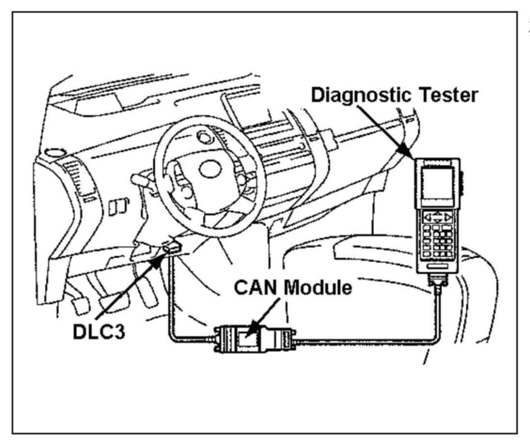 (b) Connect the diagnostic tester with the CAN Module to the DLC3 connector.