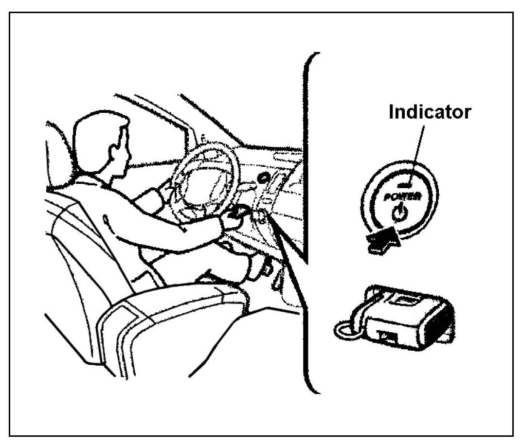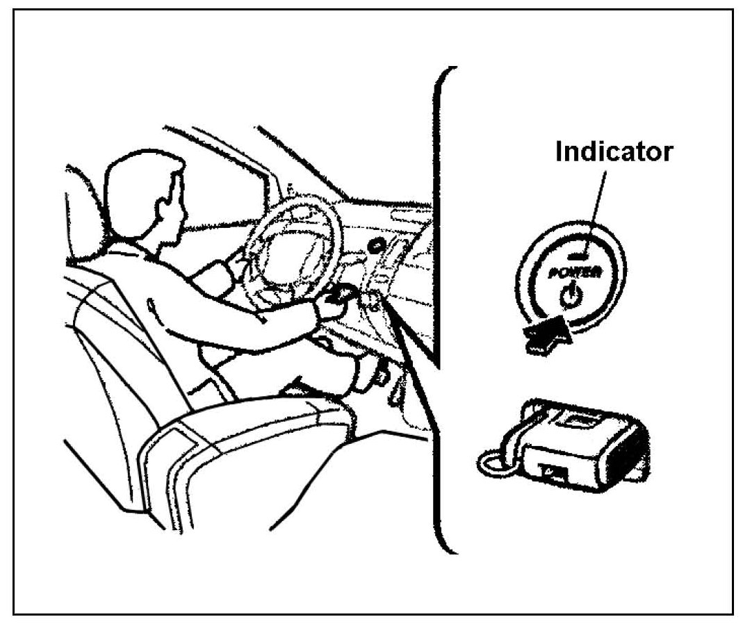 ^ IG is "OFF." Push the "POWER" switch without depressing brake pedal until the indicator lamp is not lit.