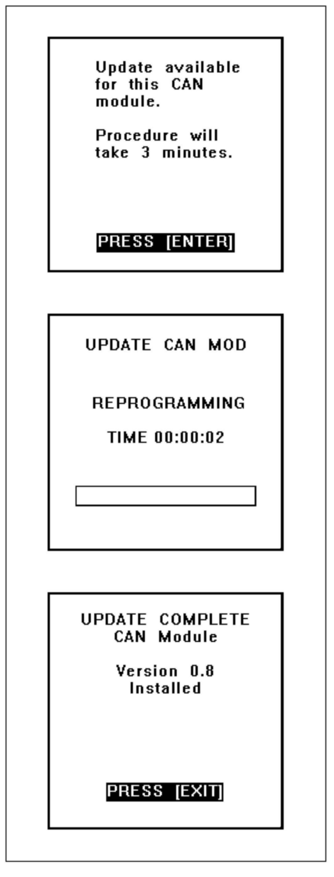 (m) The CAN module update will take approximately 3 minutes.