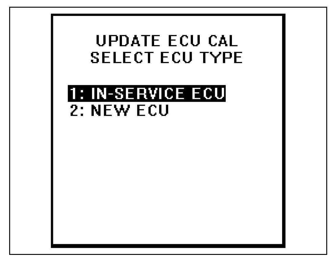 (c) Select "1: IN-SERVICE ECU" from "UPDATE ECU CAL SELECT ECU TYPE" menu.