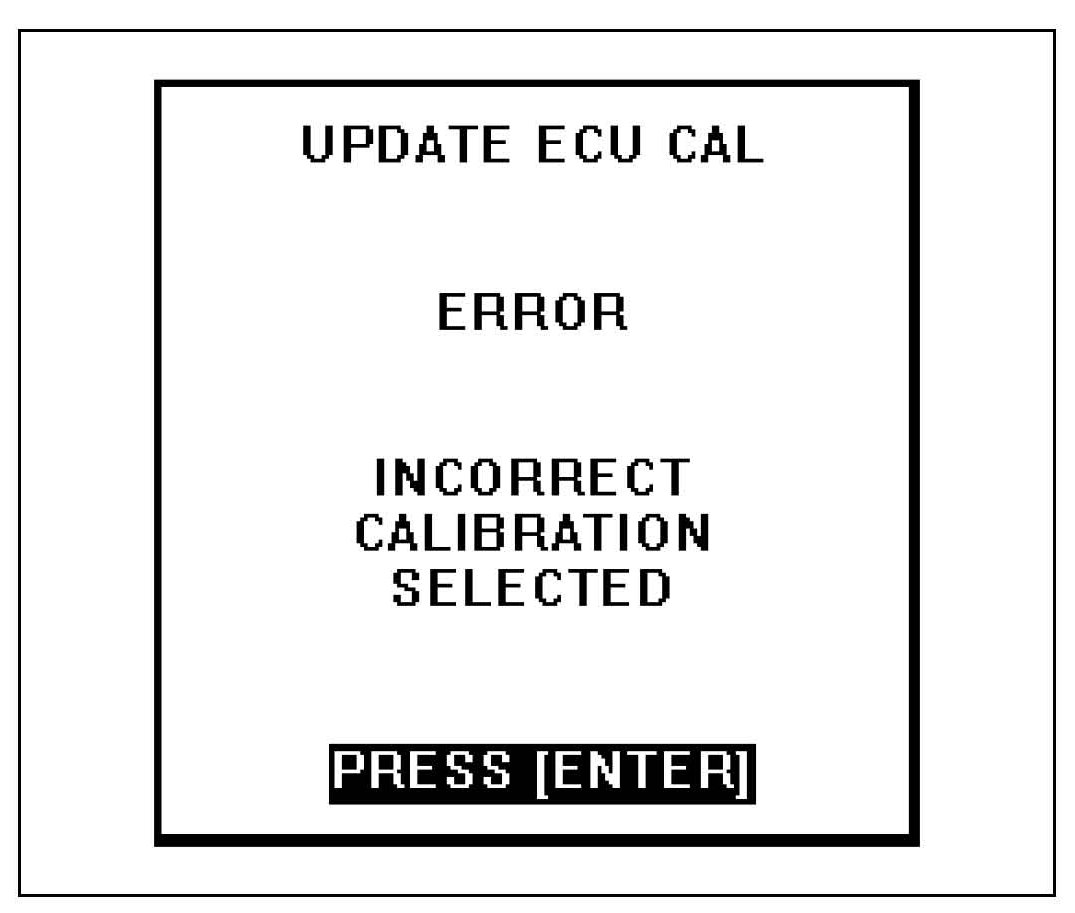 If you select the wrong calibration ID, the diagnostic tester will display the screen shown to the left. Please select the correct calibration ID again after pressing the "ENTER" key.