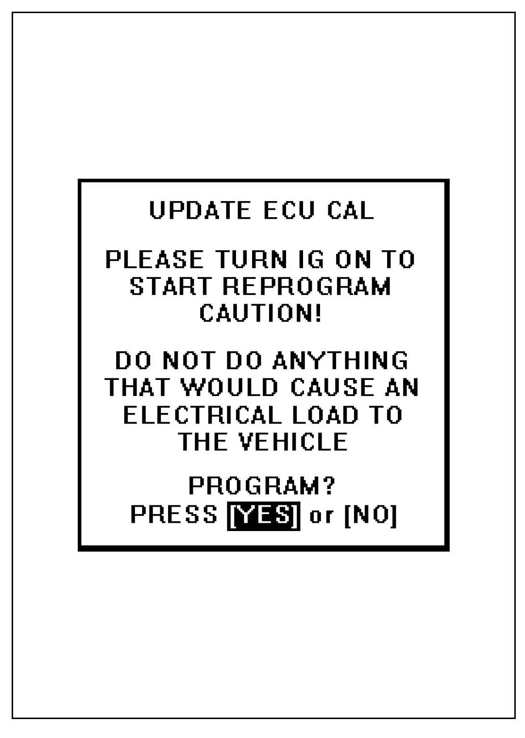 ^ Do not do anything that would cause an electrical load to the vehicle after pressing the "YES" key.